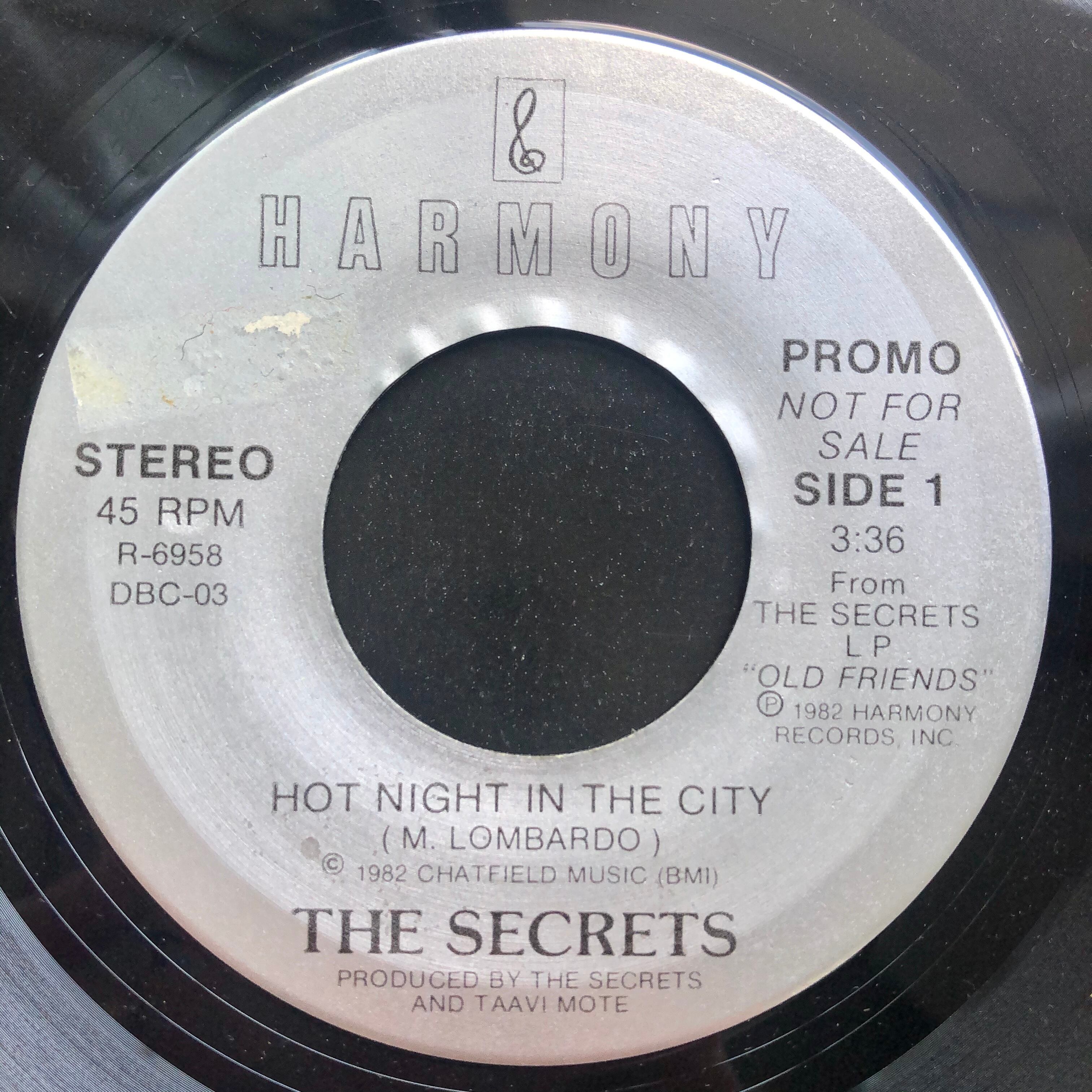 世界中にいくつも存在する The Secrets の中でも、特に無名かつ、ほとんど情報がないこちらは、恐らくカリフォルニアのシークレッツ。パワーポップ好きはバンド名もさることながら、裏ジャケのメンバー写真をみると、つい買わずにはいられないだろう。内容はパワーポップというよりAOR系ロックの部類で、ジャケット表記とは異なり両面同曲。熱心なコレクター向けのB級レコード。レコード&ジャケット:vg+