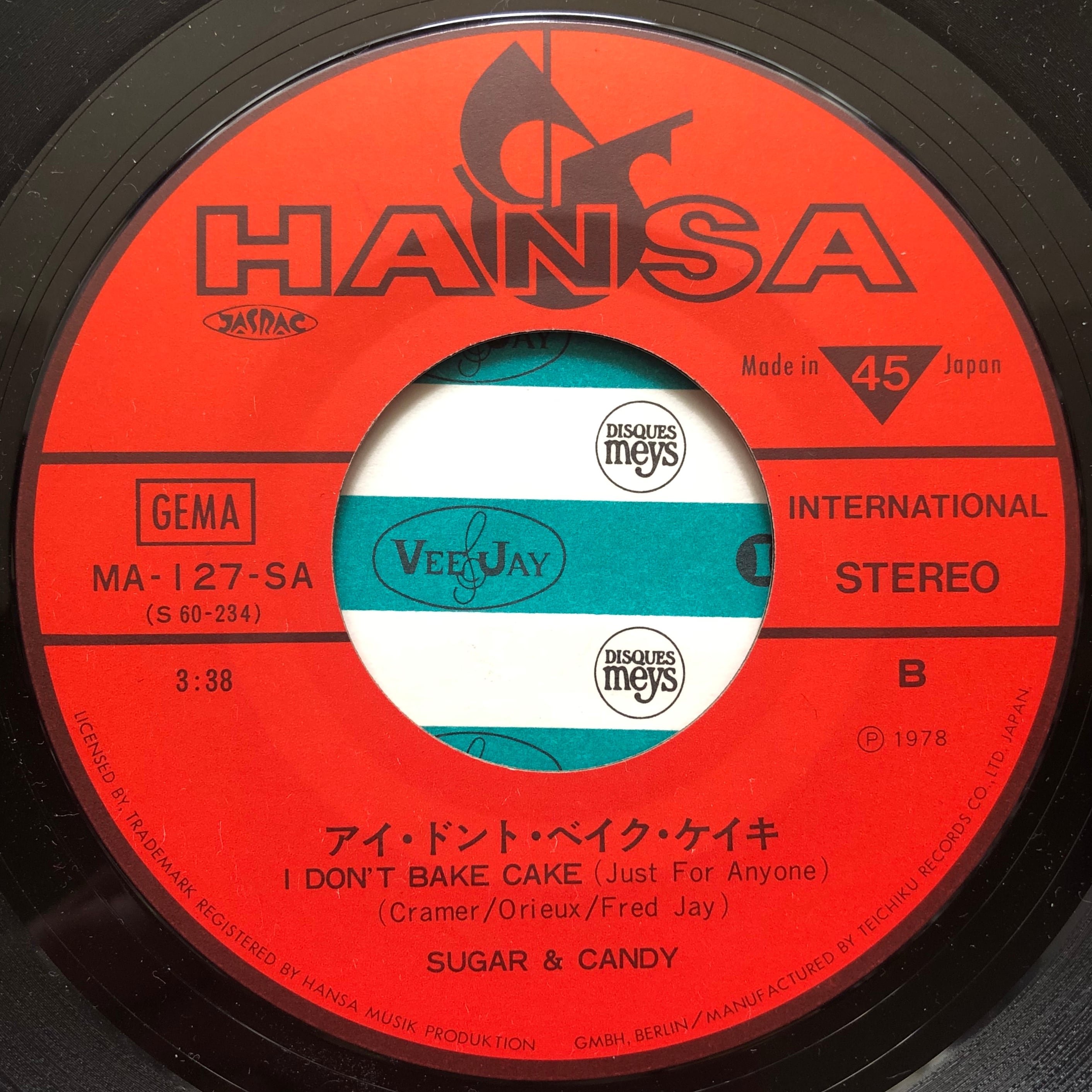 日本盤以外のヨーロッパ各国盤は、メロウな I Don't Bake Cake (Just For Anyone) がA面だが、ウガチャカウガウガのイントロ~の美人姉妹 Sugar & Candy のキュートなヴォーカルにへんてこなノリがまた最高すぎる "Monkey Dance" は日本盤のみA面リリースで大正解でしょう。DJでも使えるクラシックなチープンナイスおすすめ盤。