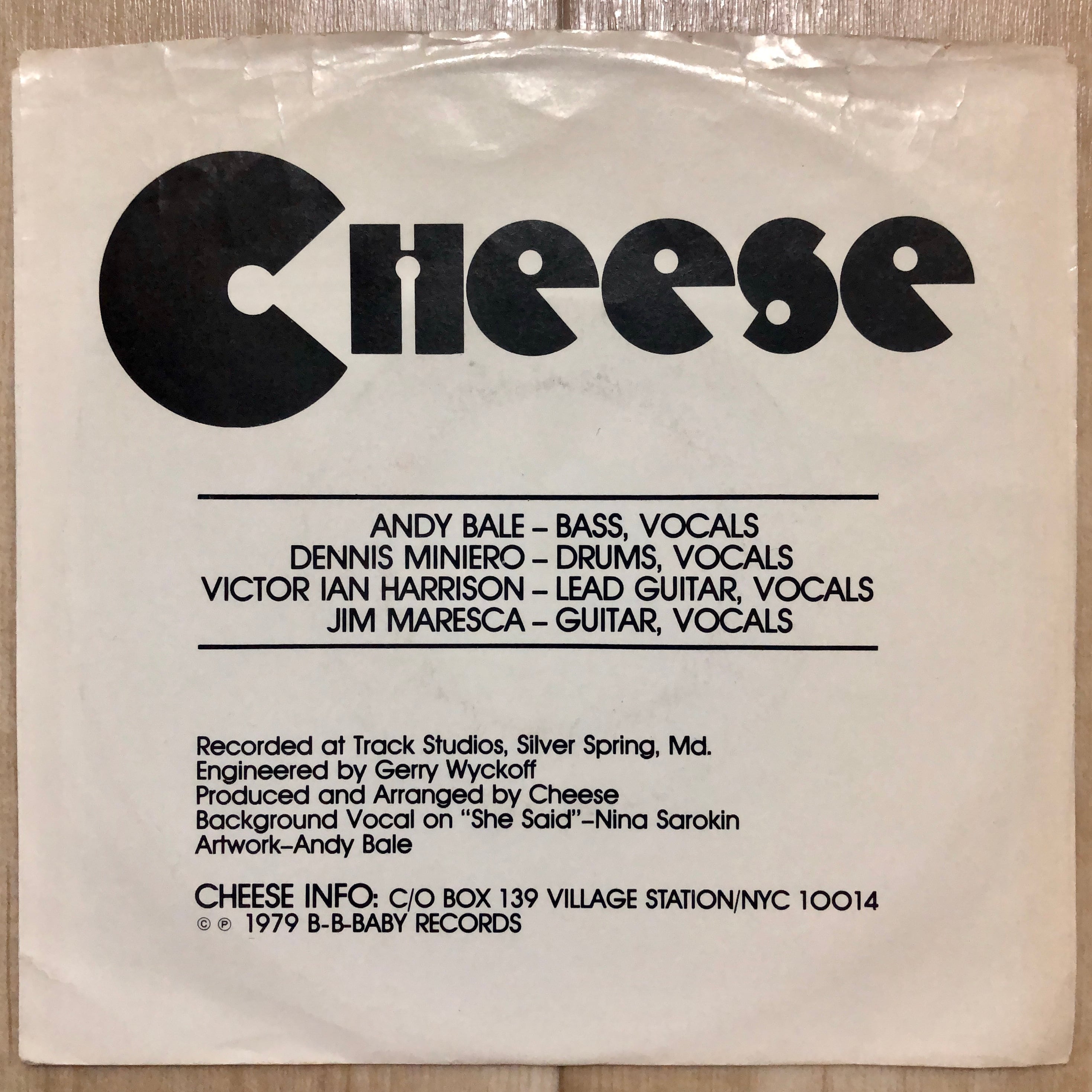 B級にして既にアメリカン・パワーポップ・クラシックの仲間入りを果たしたNYCの4人組 Cheese の唯一作。チープでかわいいジャケットとは裏腹に、最後までガッチリと聴かせる楽曲は両面ともにロック度満点で The Who 影響下の好サンプラー。ジャケット左辺の中央部に数センチの破れあり。レコード vg+ ジャケット vg
