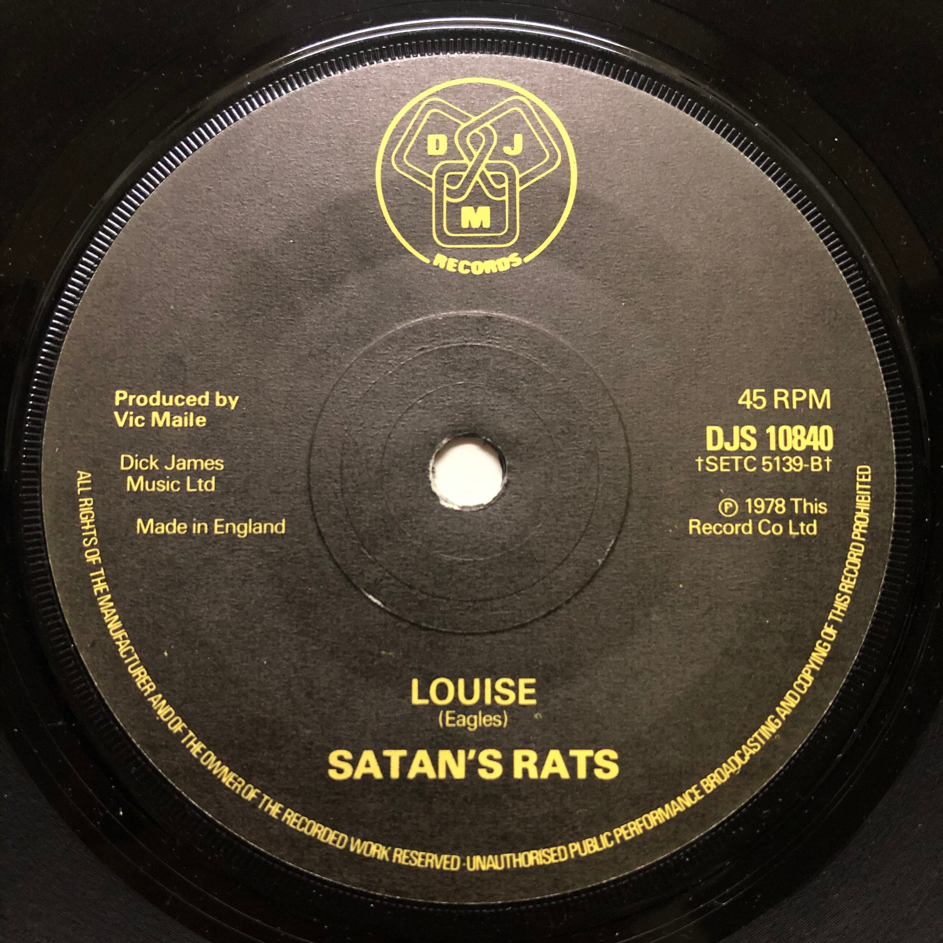 Evesham, Worcestershire のティーン・パンク代表、セイタンズ・ラッツの 3rd & ラストシングル。Vic Maile プロデュースの文句なしのキラー2サイダーズ。ユ・メ・ミ・シはもちろんのこと、フリップの Louise は 2nd シングルのバージョンともども甲乙つけ難い10代が残した UK パンク史上クールすぎる屈指の超名曲。