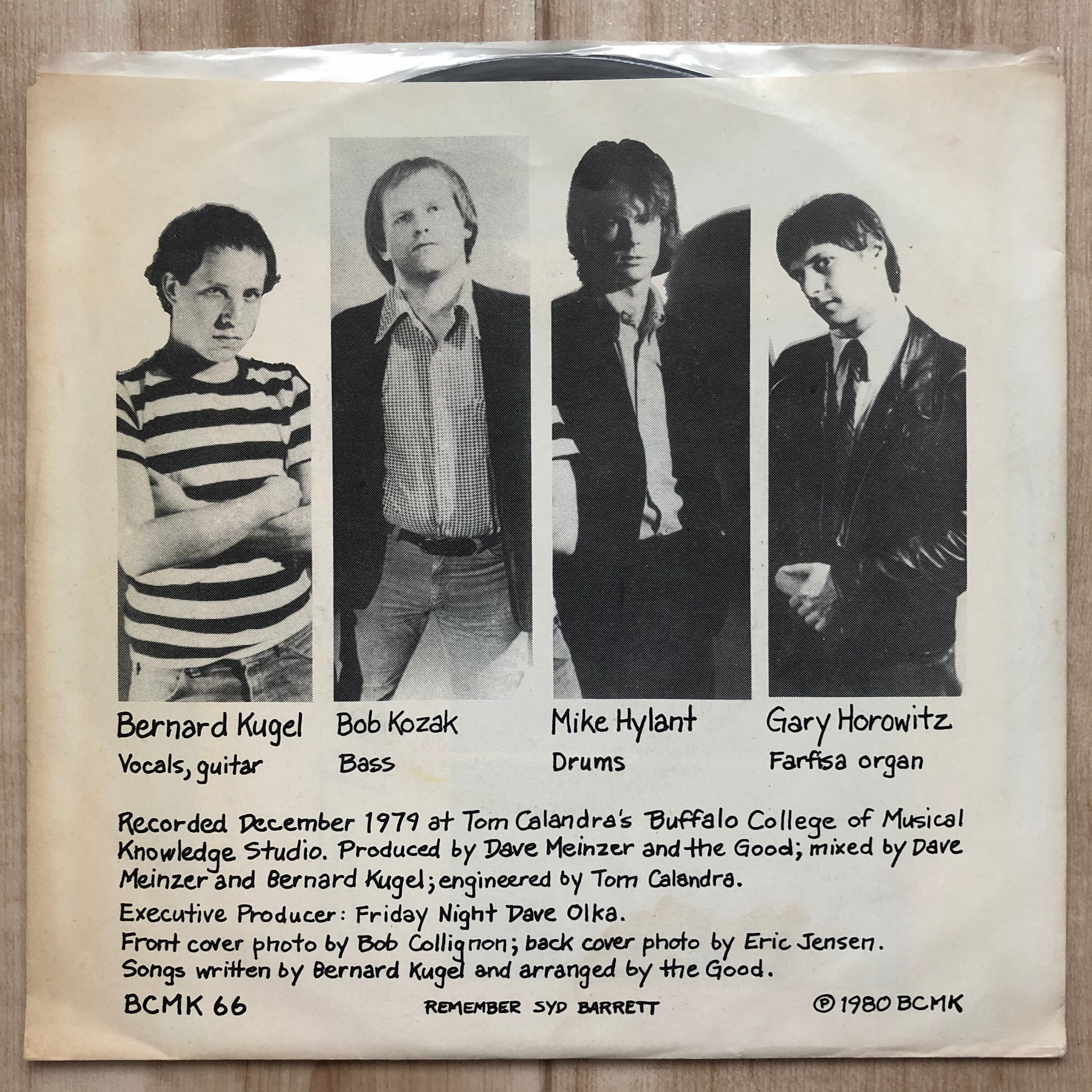 映画 Buffalo '66 等でご存知 Vincent Gallo が在籍していたとの噂もある、当時ニューヨーク州バッファローに数多存在した良質な PUNK/POWERPOP/GARAGE バンドの代表格 The Good の単独名義では当時唯一のシングル盤(もう一枚スプリット有)。特にB面 Clouds が大変 Good な仕上がり。インサート付属。レコード:vg++ ジャケット:vg+