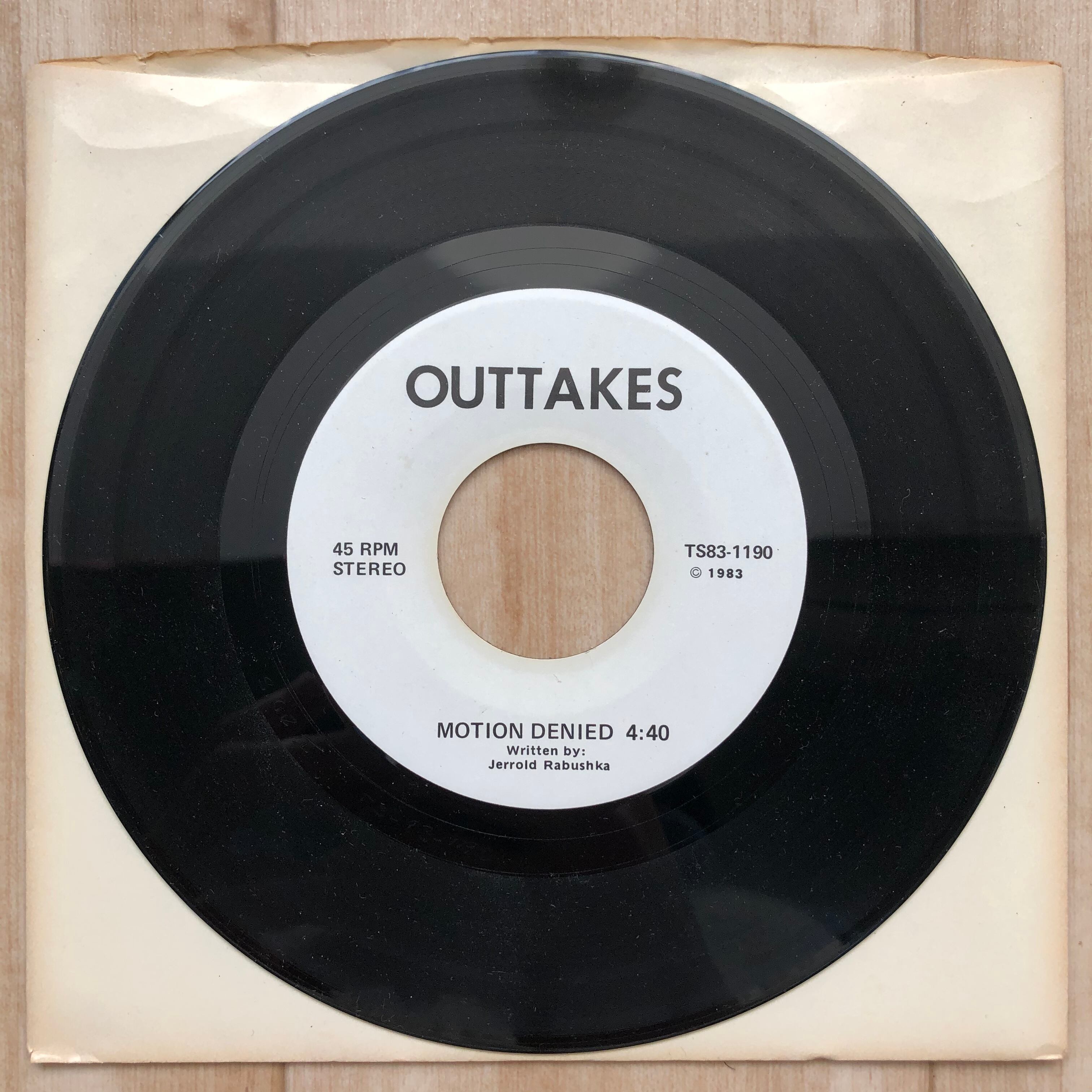 米国 St. Louis, Missouri の恐らく Jerrold Rabushka というアーティスト(それも定かではない)による Outtakes 名義、詳細不明な自主制作カルト盤。内容は両面ともサイケというか実験音楽というか、支離滅裂でよくわからないが、海外では $50 前後で取引されている謎の一枚。psych acid archives weird shaggs incredibly strange というキーワードにピンとくる方は一聴の価値あり。