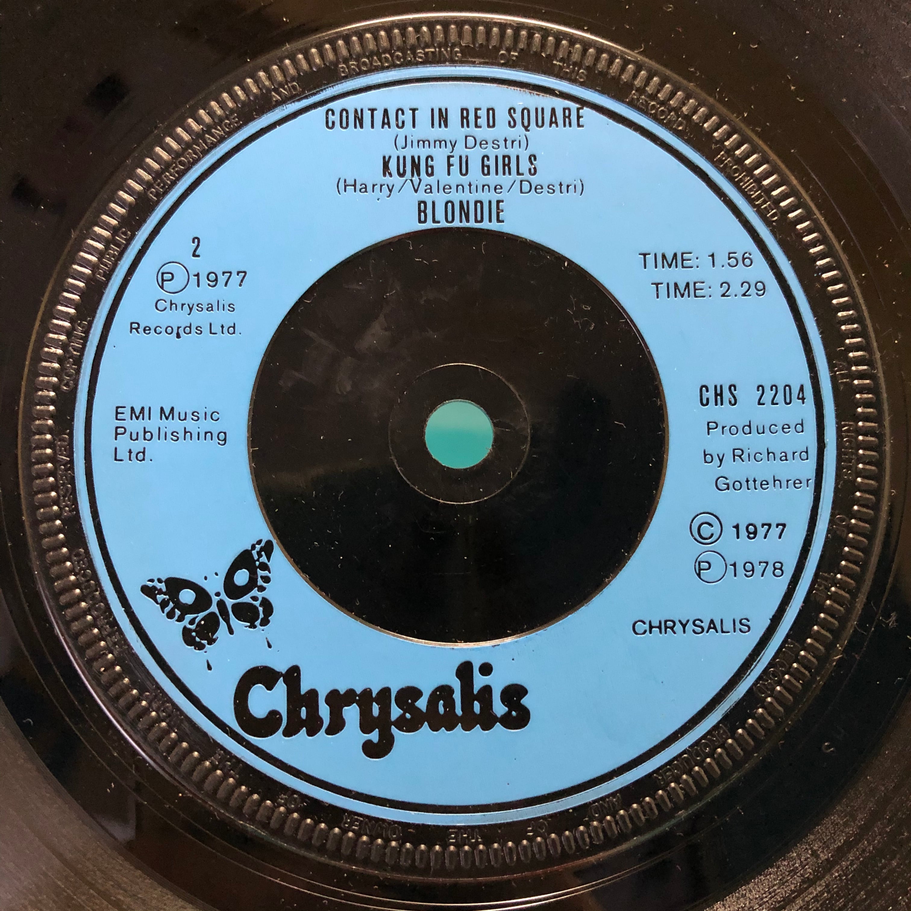 数多ある Blondie 作品中、特に好きなシングル UK 盤。全身レパード・ジャンプスーツで妖艶にキメる Deborah Harry のアー写が眩しい。 A面 Denis は Doo Wap グループ Randy & The Rainbows のカバーだが流石の出来栄え。B面2曲は Jimmy Destri や Gary Valentine が作ったオリジナル曲で文句なしに格好良い。お得な Exteded Pop 盤。