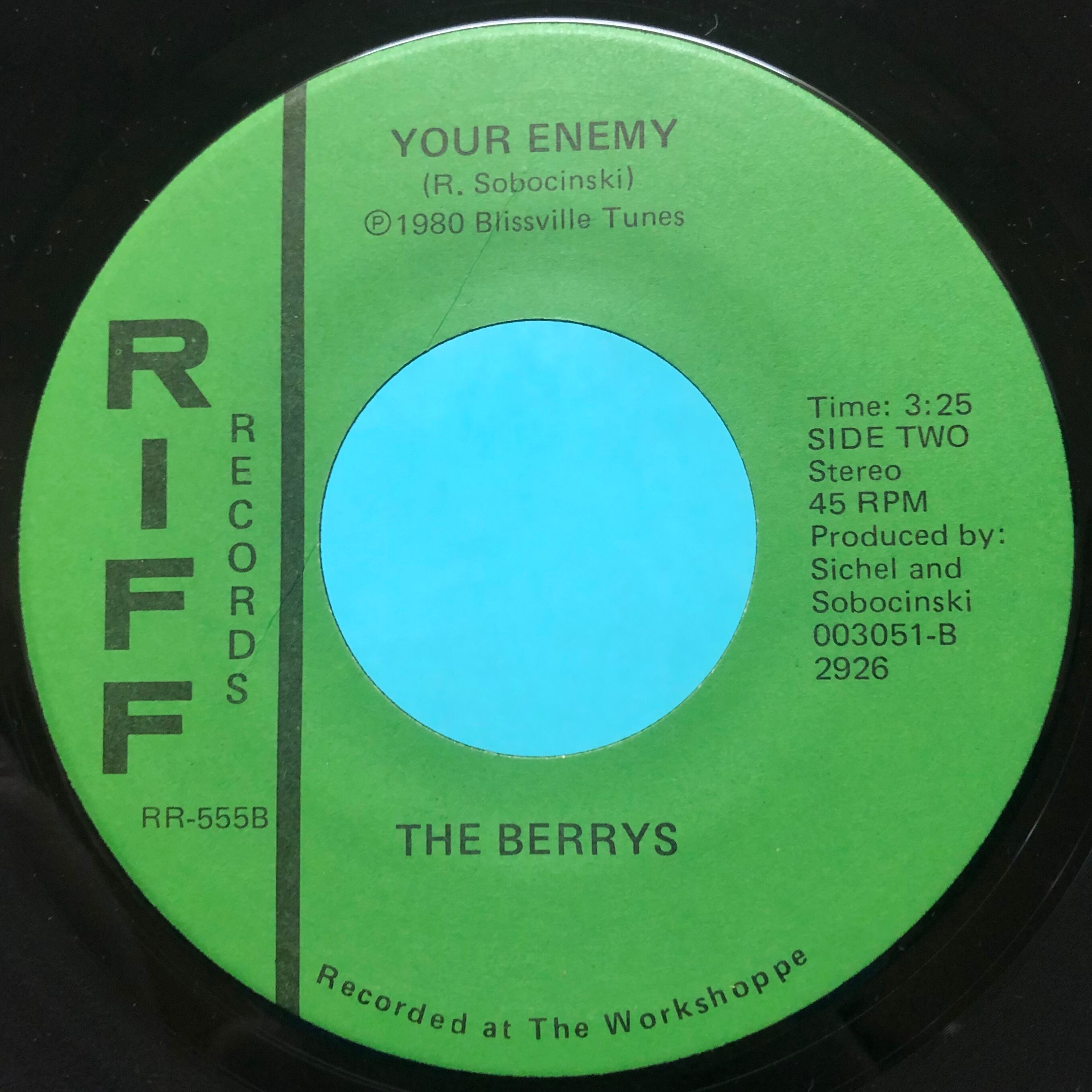詳細不明、恐らくNY産パワーポップ・バンド The Berrys 1stシングル。2ndシングルは割と出回るが、こちらは Hard to find で古くから海外コレクターのウォントリストでみかける幻の一枚。内容はコンピ未収録ながらも、両面ともにUKパワーポップ好きにもアピールできる、シャキッとした所謂 British Invasion 直系の正統派アメリカン・パワーポップで Bomp や The Nerves ファンには間違いない一枚。