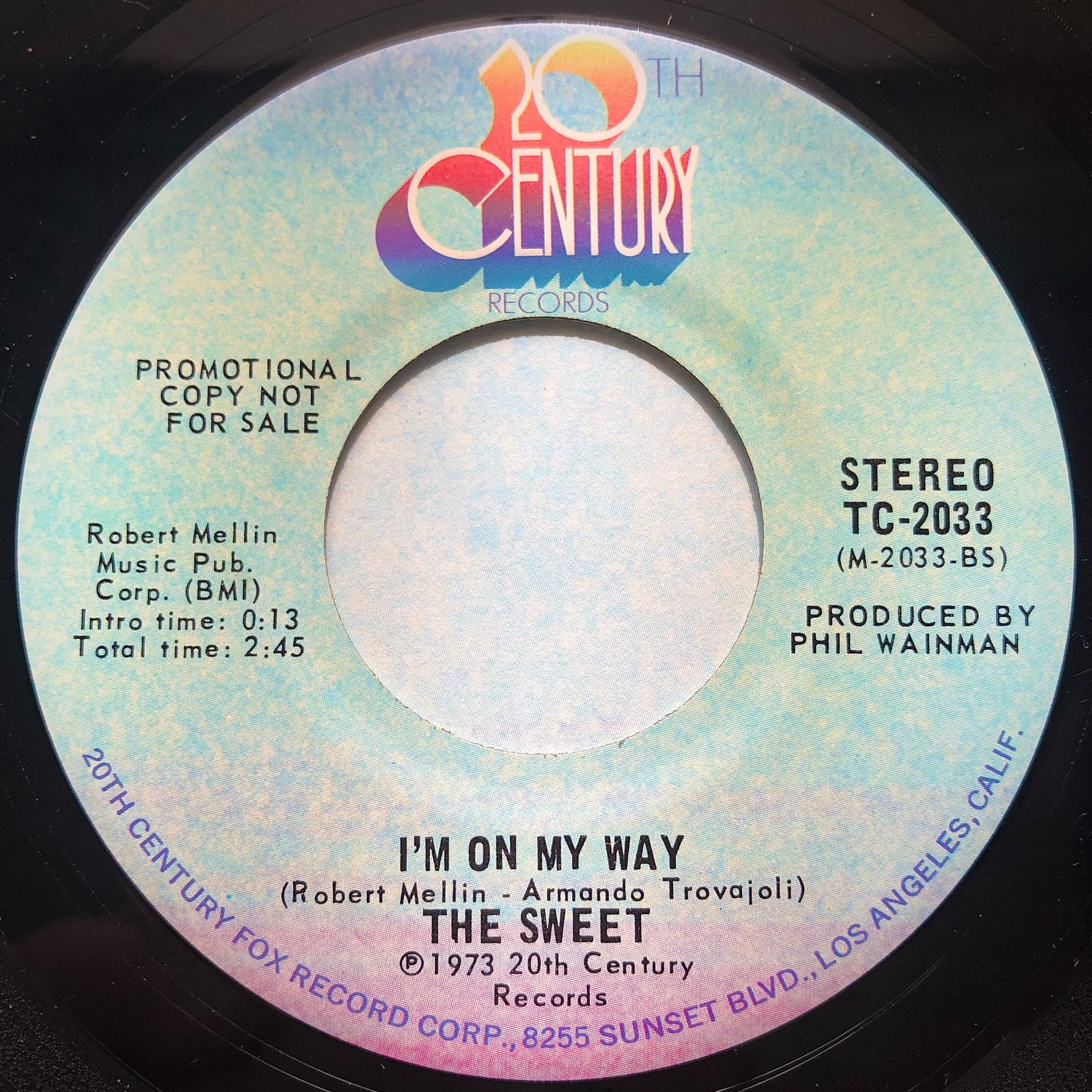 グラムロック前夜の68年にリリースされた The Sweet で桁違いにレアな1stシングル Slow Motion のB面 It's Lonely Out There が こちらのA面に収録、そして英国では何故かシングルにならなかった69年録音 I'm On My Way がB面にカップリングされ、73年にアメリカ盤のみリリースされた貴重なシングルのプロモ盤。両面グラムでもバブルガムでもない初期スイートも格別である。