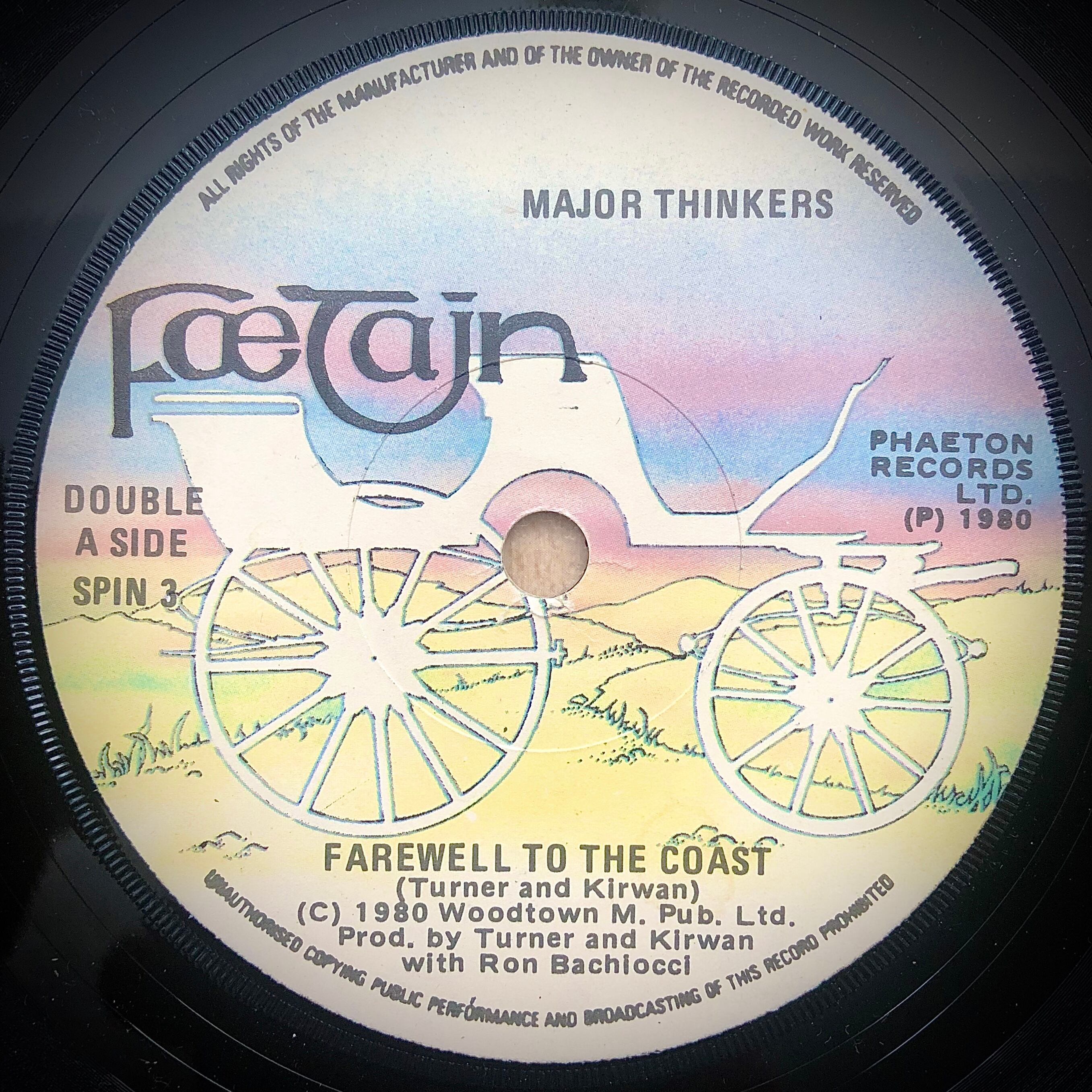 アイルランドとアメリカ出身メンバーが在籍する The Major Thinkers ファーストシングルのアイルランド盤。サビがキャッチーなA面 Back In The 80's はNew Wave, Synth Pop系で悪くないが、B面 Farewell To The Coast こちらが英国グラム影響下のロックバラッドで曲も短くてオススメ。