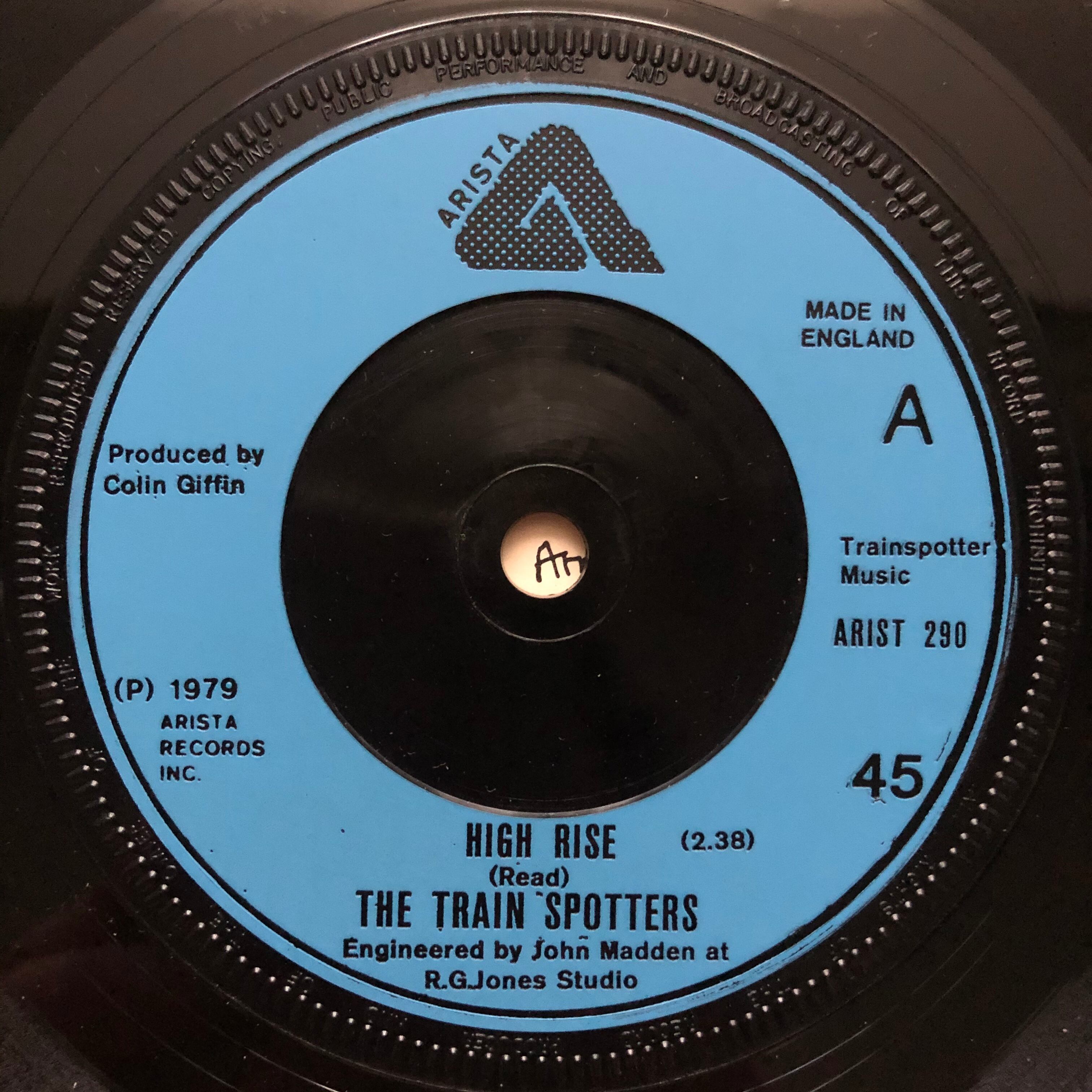 BBC Radio DJ や、Top of the Pops の司会でも有名な多彩な才能の持ち主 Mike Read 率いる英国バンド The Trainspotters の1stシングル。A面 High Rise はキャッチーかつ甘すぎないシャープな UK パンク/パワーポップのミックス具合が絶妙なクラシックナンバー。複数コンピに収録されており、最近 Cherry Red から出た Various - Harmony In My Head: UK Power Pop & New Wave 1977-81にも選曲された。B面 Rock 'N' Roll Hall Of Fame もタイトルどおりのゴキゲン R&R ナンバーが楽しめるお得な一枚。