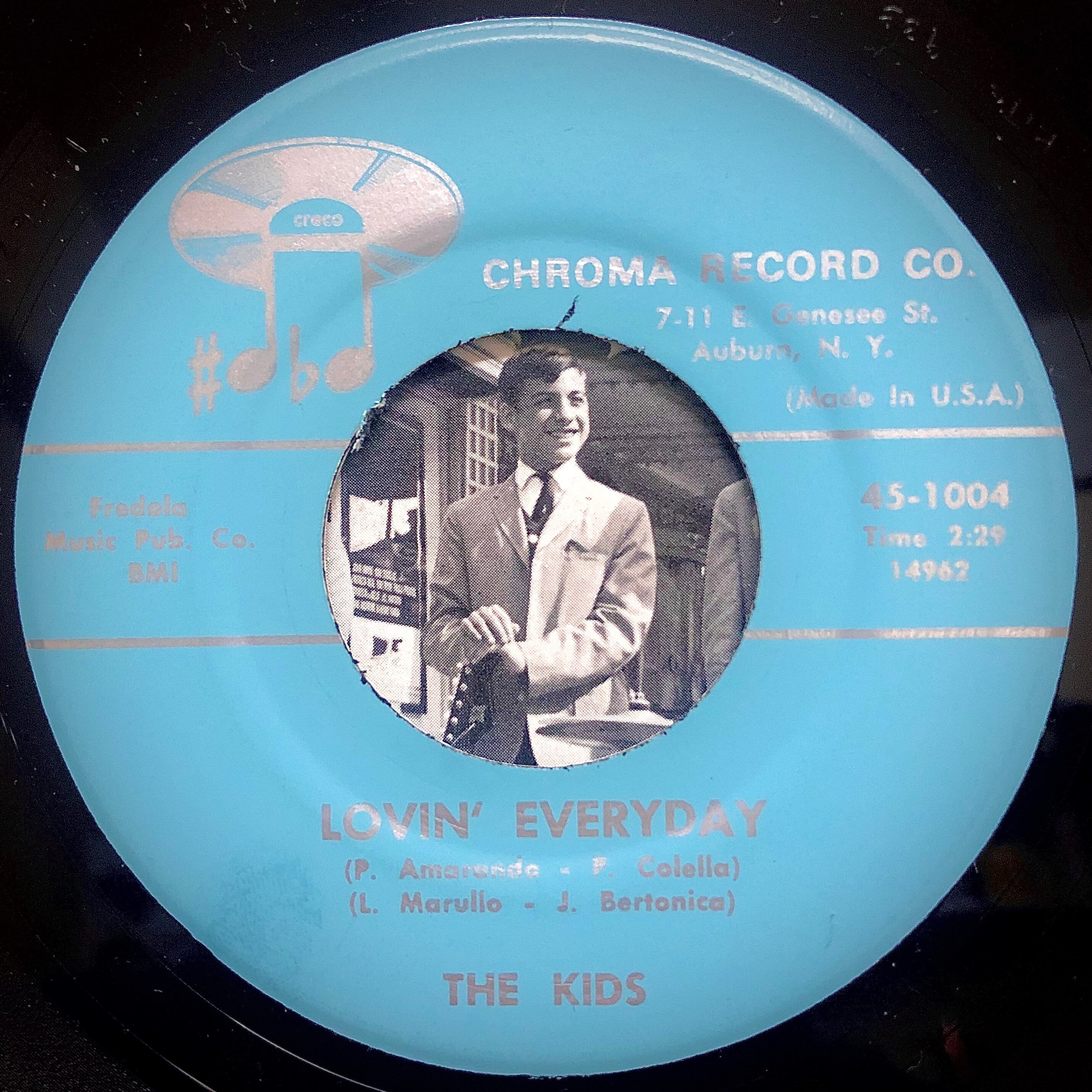 Auburn, New Yorkのレーベル Chroma Record Co. よりリリースされた両面最高なティーン・パンクの至宝、その名も "The Kids” のおそらく唯一作。B面「Lovin' Everyday」は Various - Class Of '66! 収録。ジャケ左から2番目、若干12歳の Louis Marullo は後の Eric Adams(Manowar)その人。人に歴史あり。青レーベル面に文字インフォ黒と銀色があり、こちらは比較的みかけない後者となります。