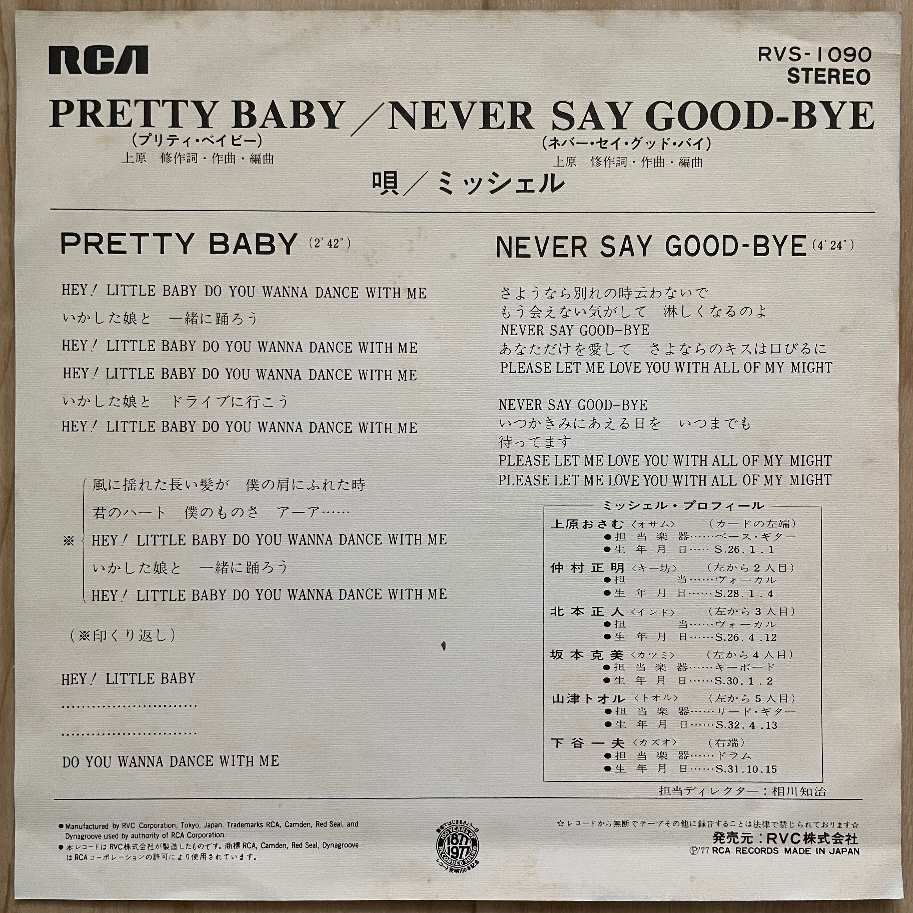 中心メンバー 上原 修 のキャリアが凄すぎる。GSバンド「オリーヴ」「ピープル」「ローズマリー」「ジュテーム」を経て、この『ミッシェル』を結成。その後も「内田裕也&1815トルーマンカポーティバンド」に参加、ロックフェスティバル等に多数出演、1980年チャックベリー初来日全国ツアーのメンバー(ピアニスト)、1994年「加山雄三&ハイパーランチャーズ」に参加という筋金入りのロックンローラーで、このミッシェル1stシングル両面の作詞作曲も上原 修。特にA面「Pretty Baby」はノリ抜群、ハンドクラップも効果的なオールディーズR&Rで素晴らしい。ミッシェルの他メンバーも「ピーターズ」「ロック・パイロット」「リリーズ」と豪華。他のシングル2枚とアルバムも要チェック。
