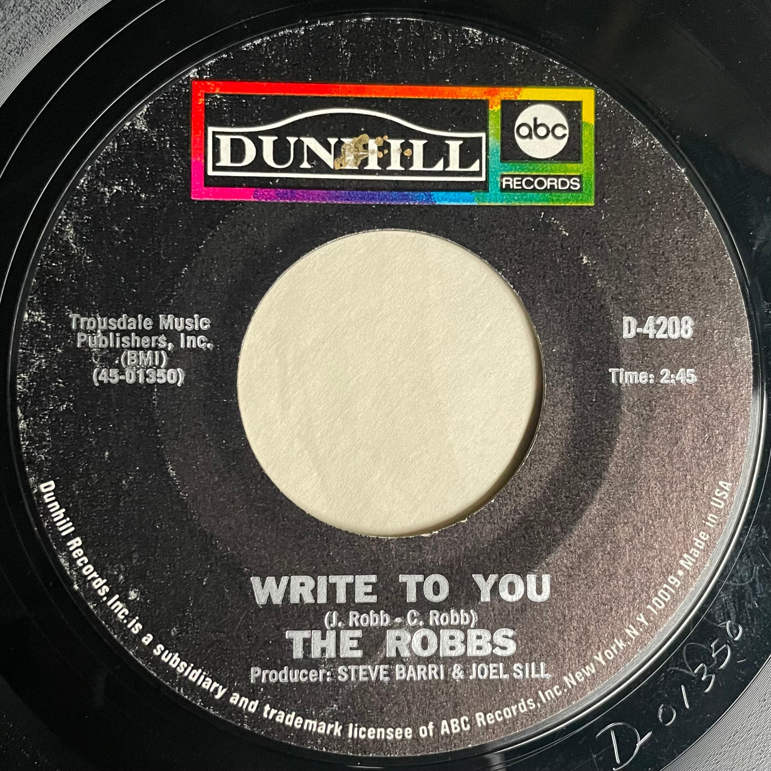 ウィスコンシン州オコノモウォックの天才3兄弟、あのテレビ番組「Where The Action Is」常連バンド The Robbs によるアルバム未収録の後期シングル。A面 Movin' は作曲チーム Dan Walsh と Harvey Price 作、B面 Write To You はメンバー作 Beatles/DC5 ライク、両面素晴らしい。