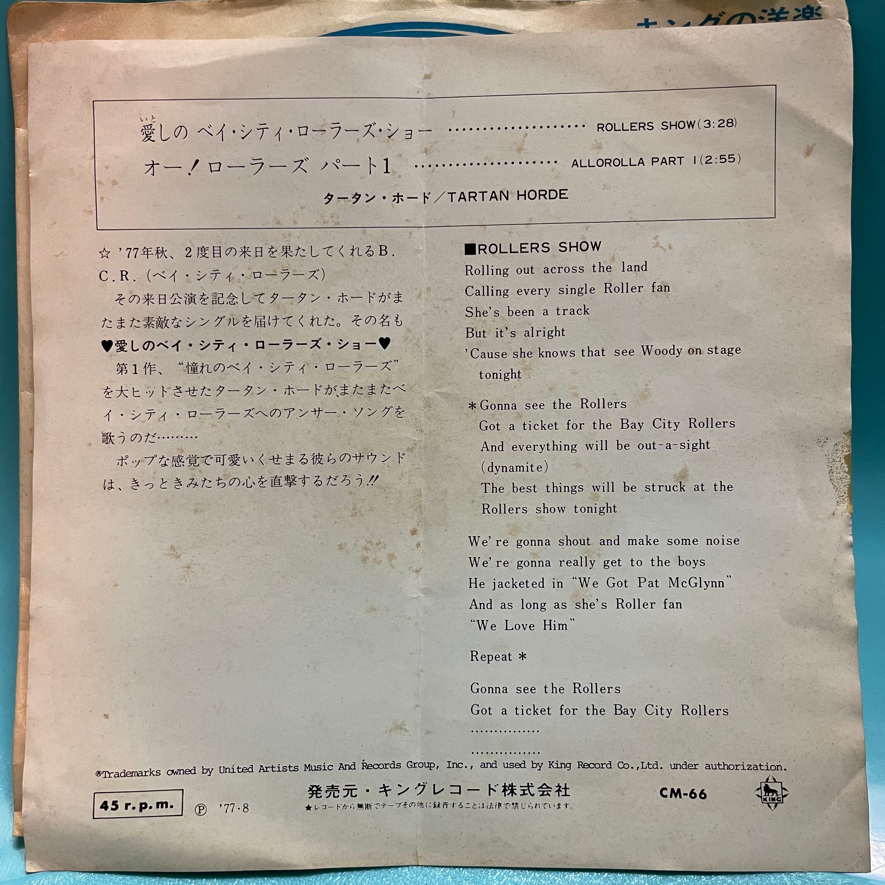 ご存知 Nick Lowe 変名の架空バンド "Tartan Horde" の邦題「愛しのベイ・シティ・ローラーズ・ショー」BOMPマガジンのパワーポップ特集にも掲載され、内容も御墨付きのこちらのシングルは全世界で日本盤のみのリリース。