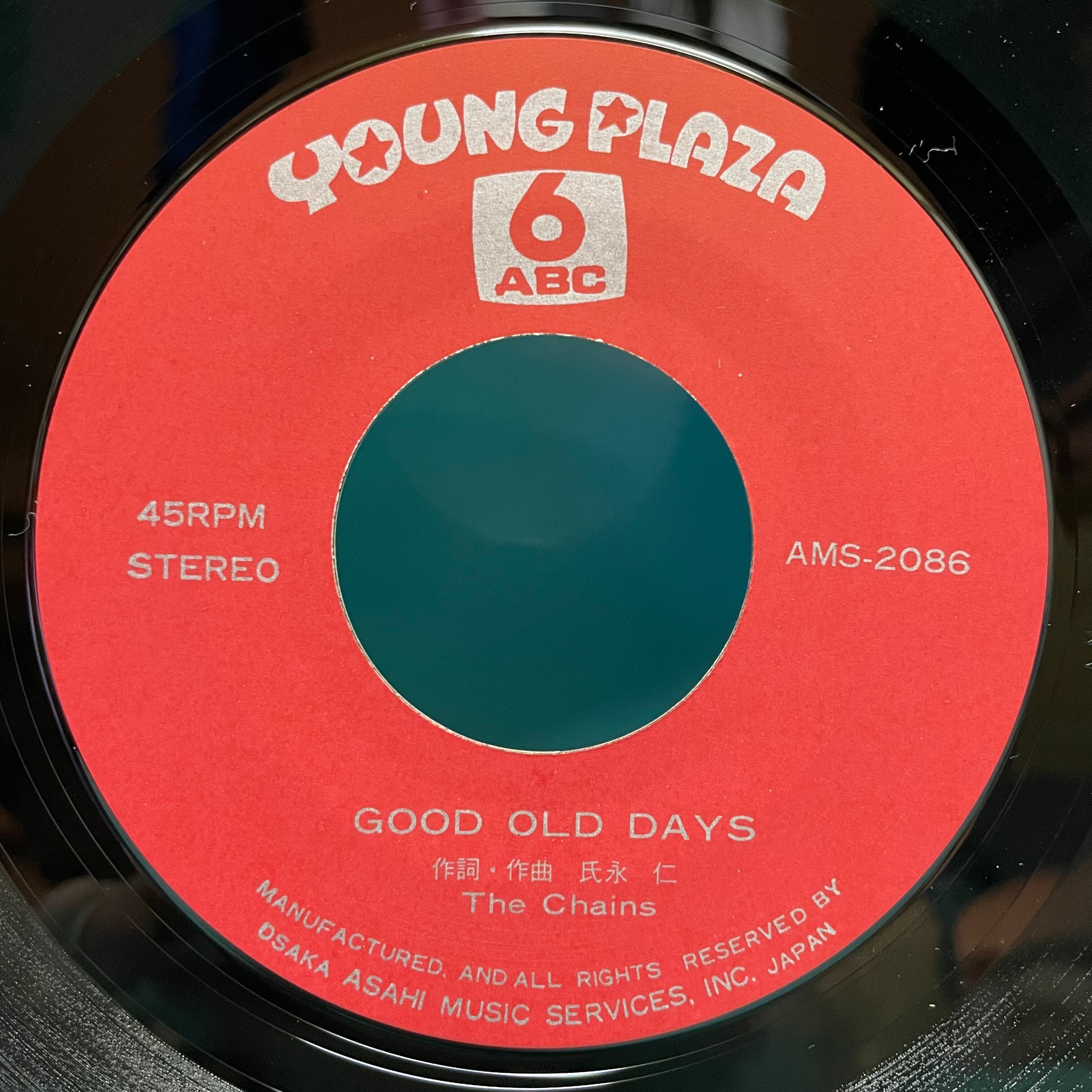 朝日放送テレビ「ヤングプラザ」シリーズ The Chains の「GOOD OLD DAYS」シングル希少盤。いかすギター・ソロからのサビ転調が素晴らしい日本語ロック大傑作。B面「売り込みの弁・会場(プラザ)の反響」には同メンバー、観客、五十嵐浩晃及び同バック・バンドのメンバーらによるコメント他を収録。