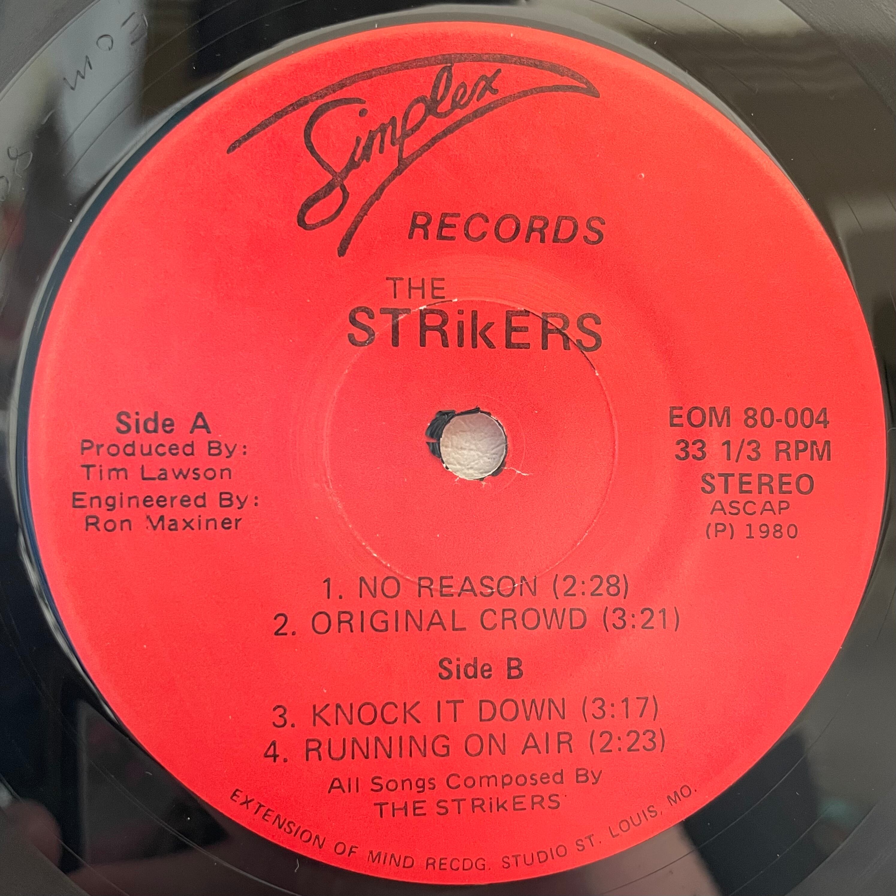 あの一部で有名な St. Louis, MO 産名 Punk コンピレーション「Test Patterns」収録の Punk Rock バンド The Strikers - No Reason 唯一シングル EP 盤。インサート、ポスター付属。ジャケット糊剥がれあり。個人的には SKA 調な A1 と B1 は次曲へのイントロ扱いで、A2 と B2 は KBD系統コンピレーションに未収録ながらも、完全無欠のアメリカンローカルバンドによる激キャッチーなパンクロックで燃える。