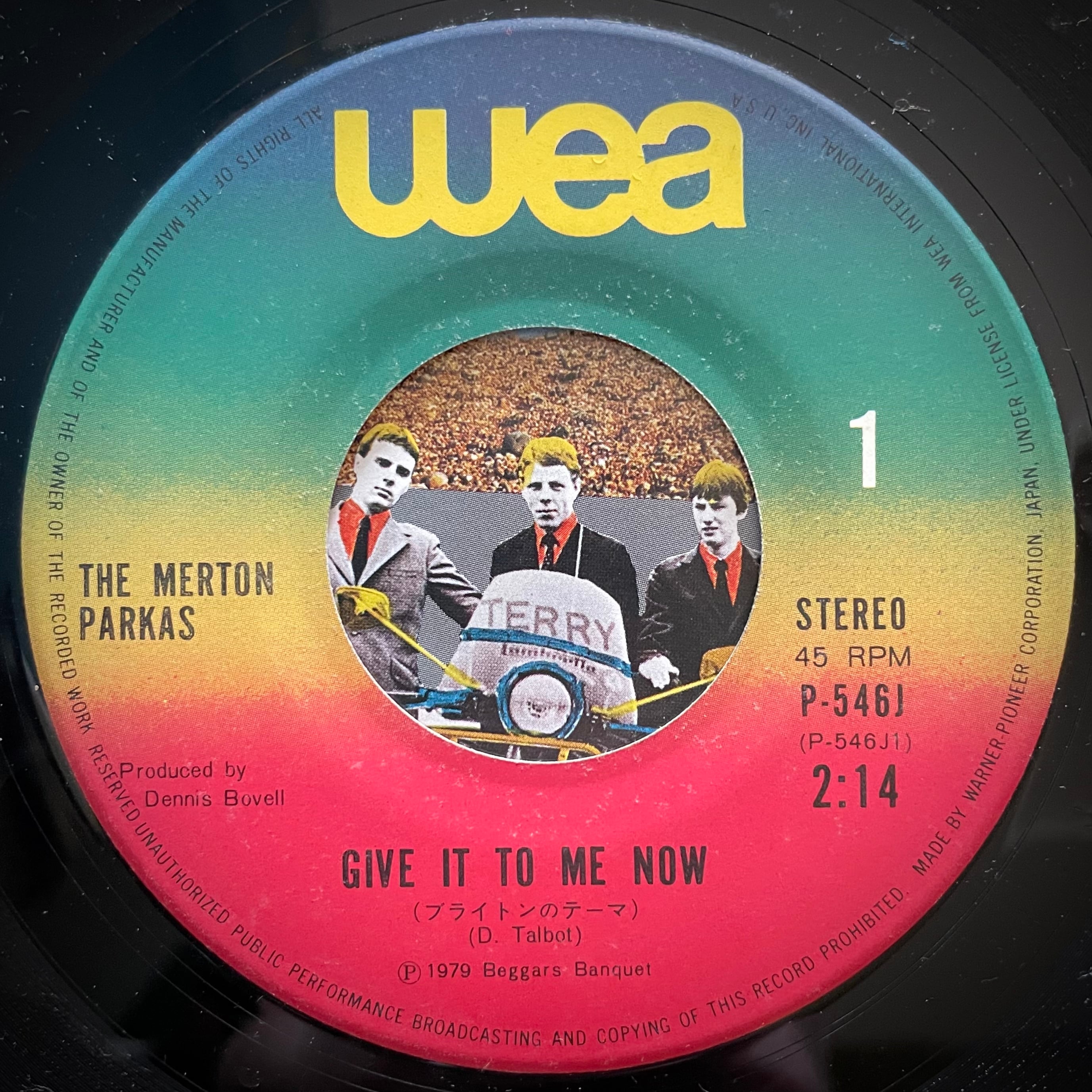 ネオモッズ愛好家はジャケ買い必須 The Merton Parkas - Give It To Me Now 邦題「ブライトンのテーマ」シングル日本盤。海外 Punk/Mod/Powerpop コレクターにも人気の一枚です。