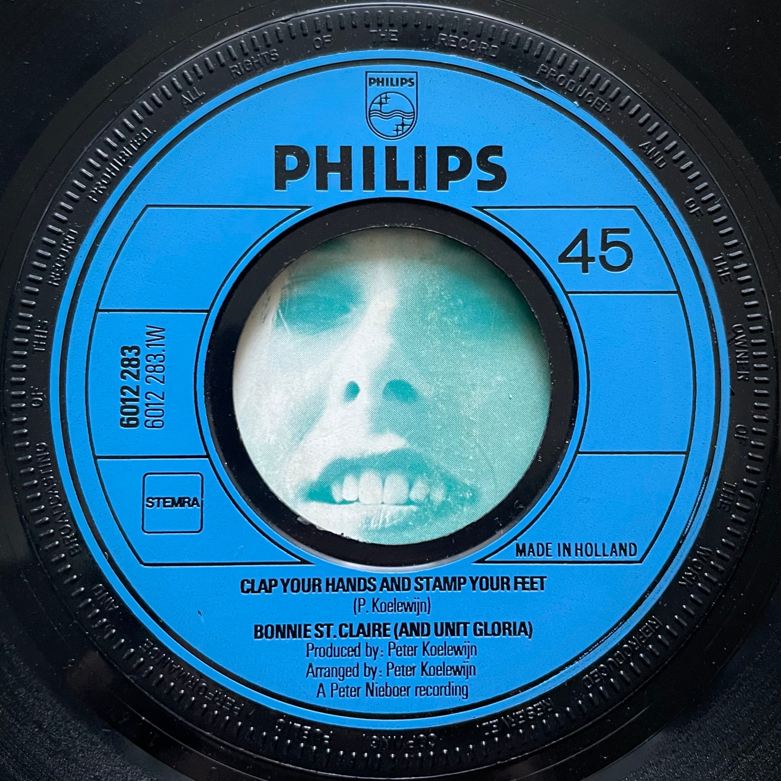 オランダのABBA的な存在ともいえる程、本国では有名な Glam R&R バンド Bonnie St. Claire の大人気ヒット曲「Clap Your Hands And Stamp Your Feet 」シングルのオランダ盤。グラムの枠を超えた世紀の POP 大名作。
