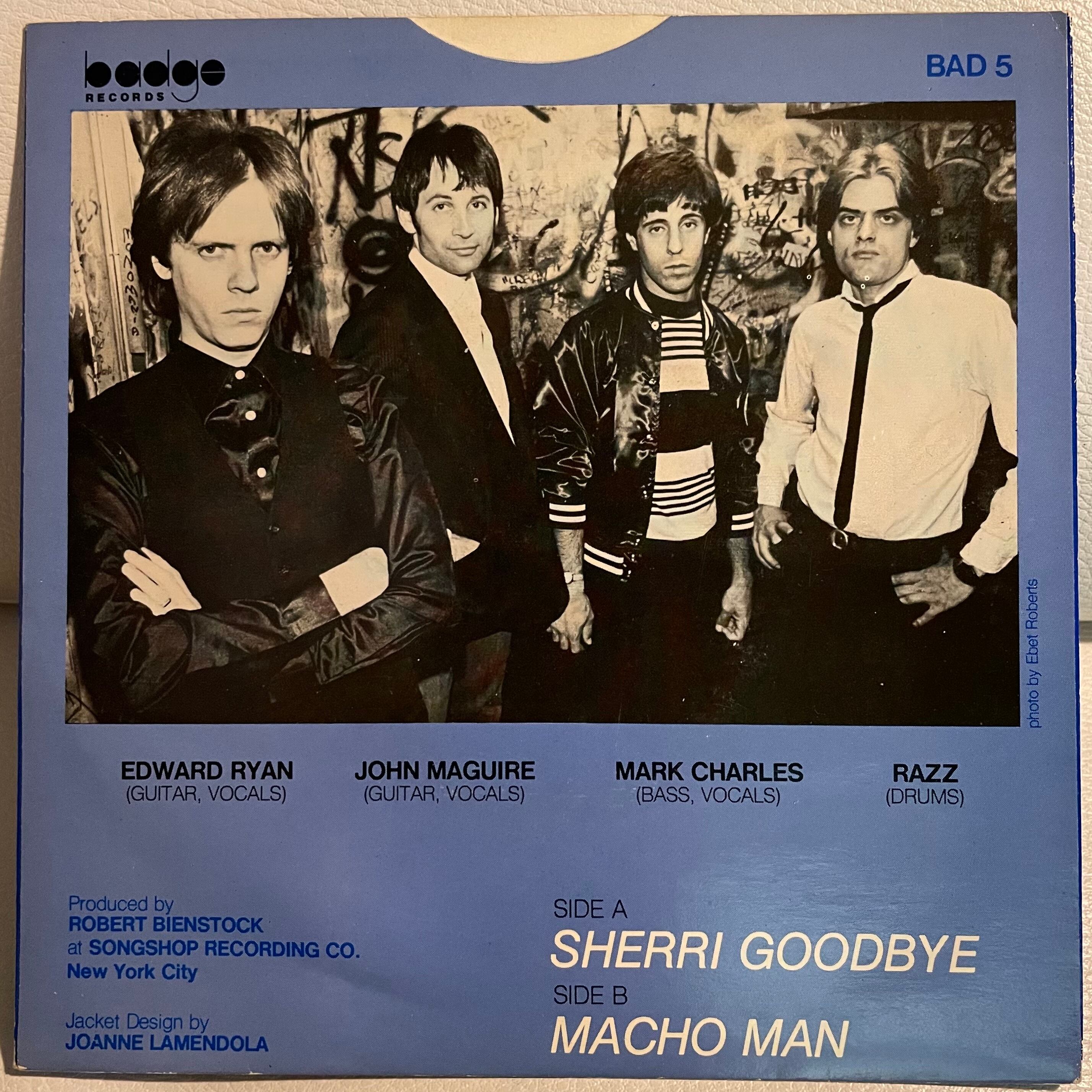 米国 NYC パワーポップバンド The Rudies の恐らくリリースは UK のみ、The Golinski Brothers と同レーベル Badge Records より唯一のシングル作。A面「Sherri Goodbye」は 人気コンピ Powerpearls Vol. 7 収録。一度聴いたら忘れられないB面「Macho Man」も必聴。