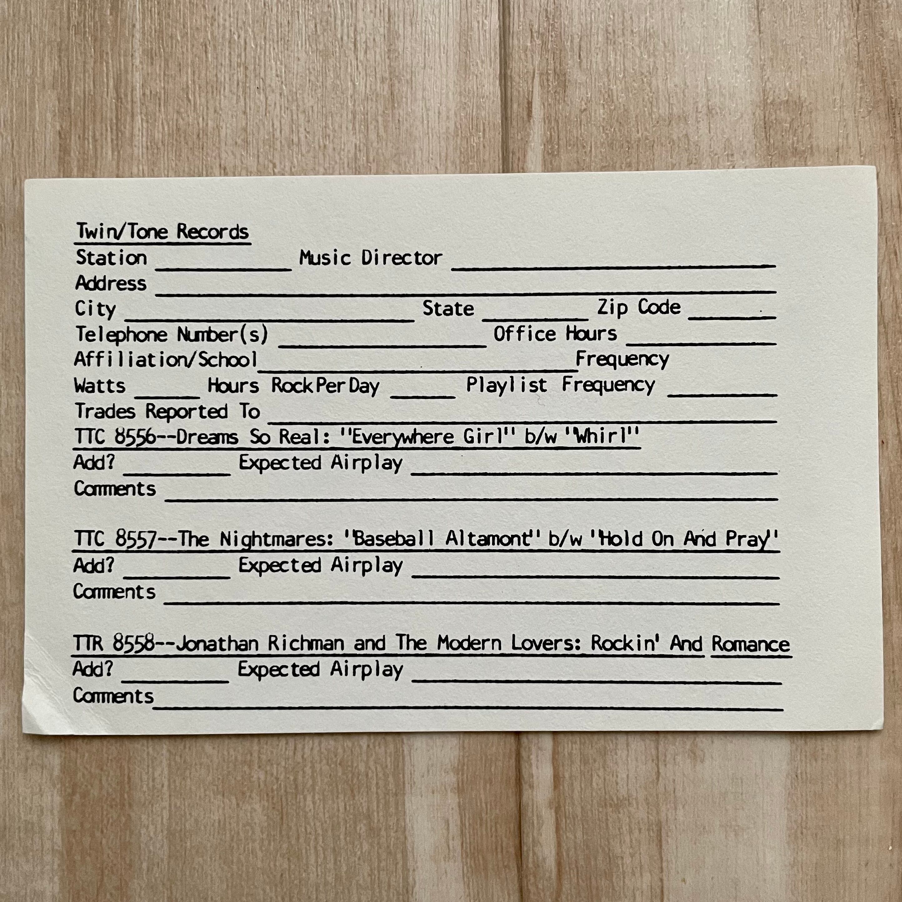 Suicide Commandos や Replacements でお馴染み、米国ミネアポリス名門 Twin/Tone Records より、『The Form』 の唯一シングル盤。オリジナル曲のA面「It Happens That Way」は最高に格好良いパンク・ロックで必聴、裏面「All The Young Dudes」のカバーも素晴らしい。ファンには嬉しい Twin/Tone Records 通販カード付属。