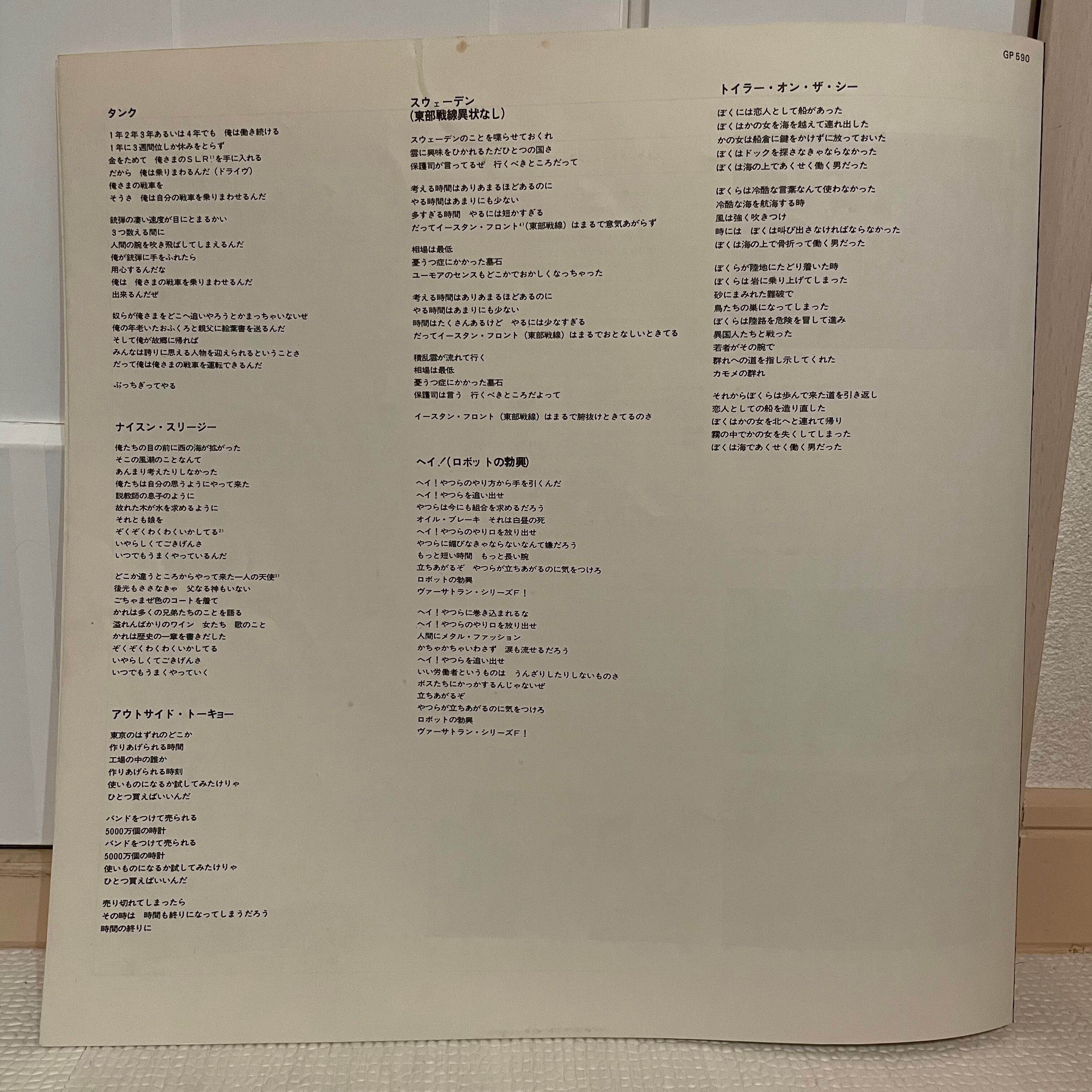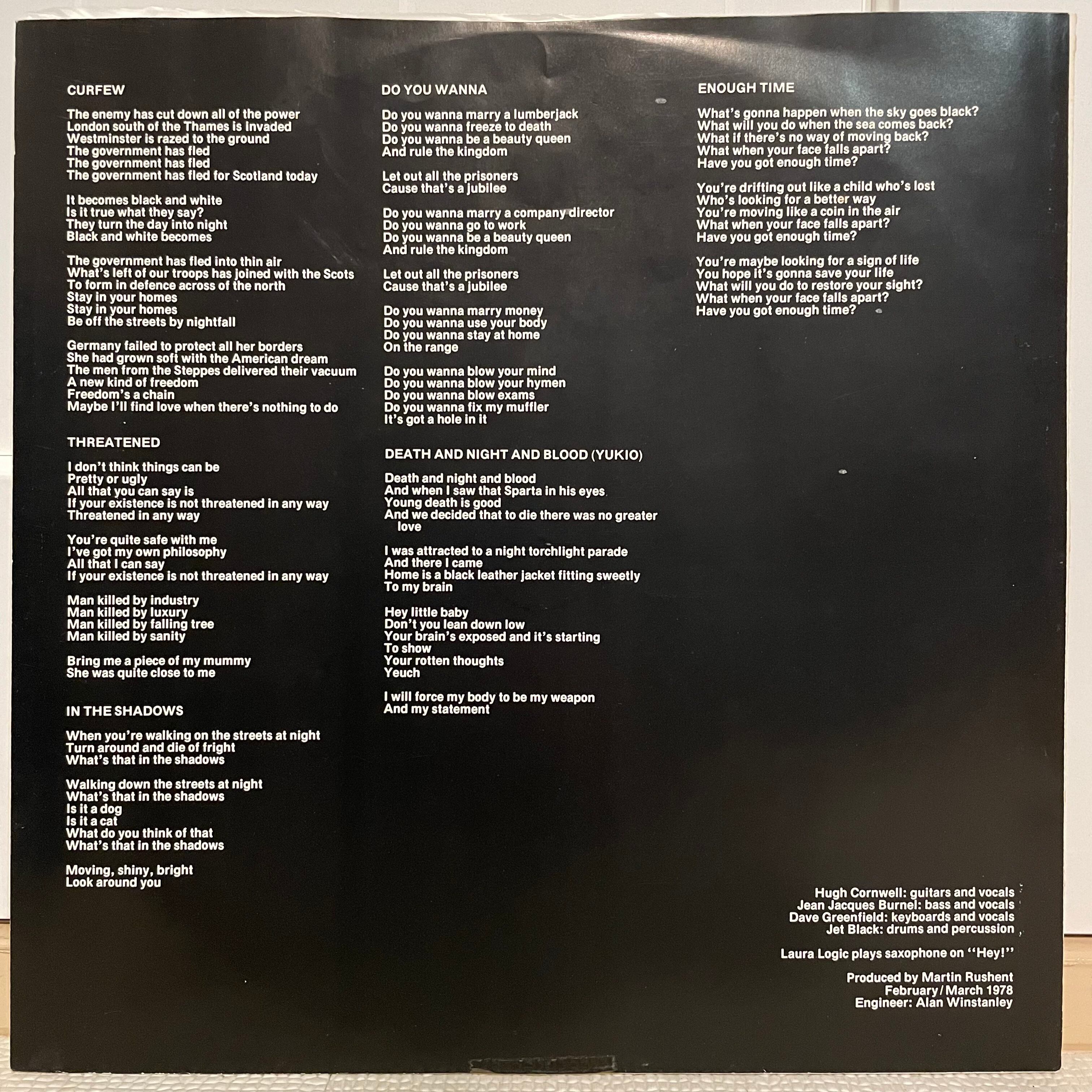 説明不要、英国ストラングラーズの最高傑作3rdアルバム日本盤帯付き。シンプルな白黒のジャケット、レーベル、インサートがこのアルバムの美しさに拍車をかけている。ライナーノーツでは豪華大御所4人(大伴良則、大貫憲章、渋谷陽一、水上はるこ)による解説が読み応えあり〼。
