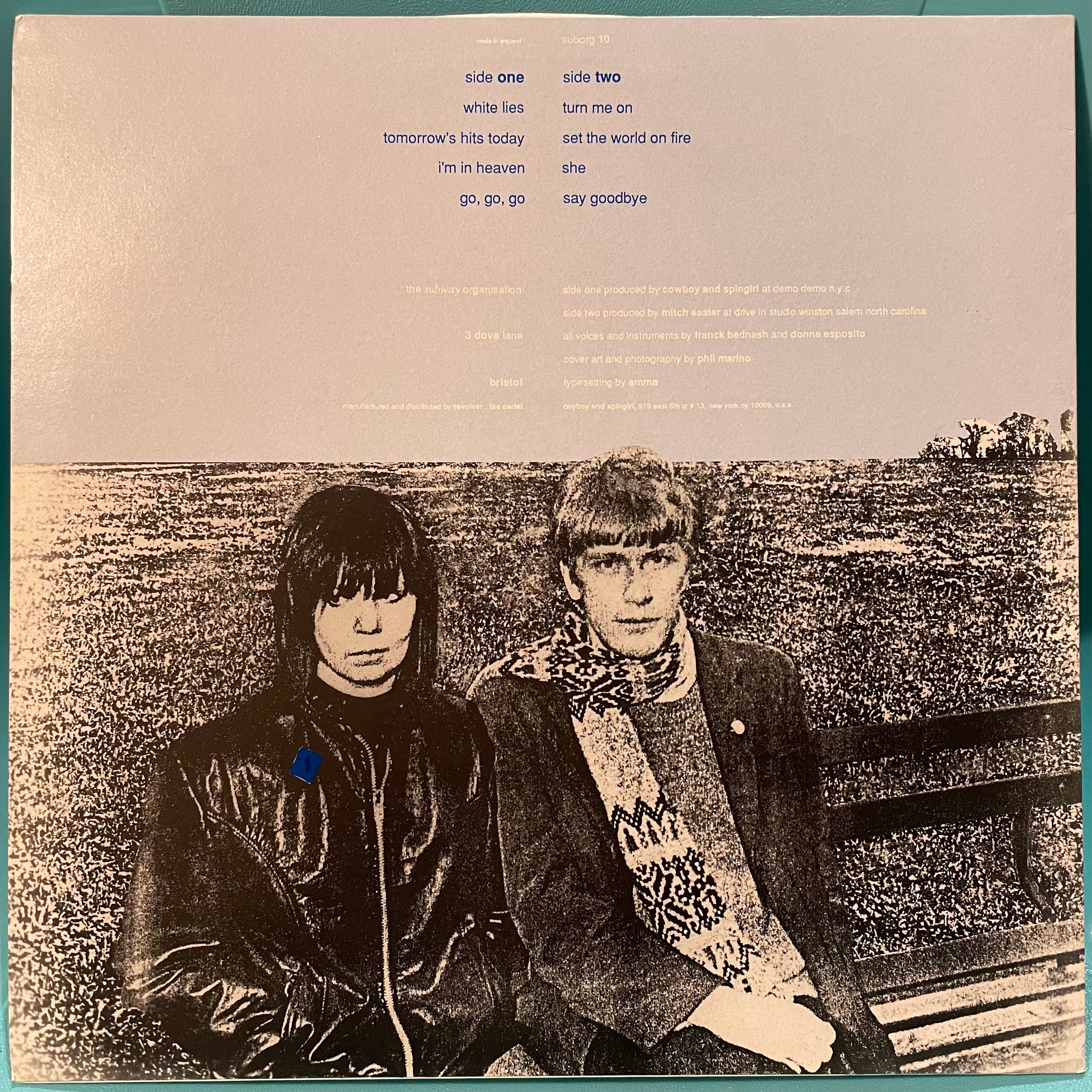 Cowboy & Spin Girl のメンバー Frank Bednash と Donna Esposito はUSパワーポップ最重要バンド『Riff Doctors』と『Cyclones』のメンバーで、特記すべきはB面に Nobunny もパクった超名曲「Turn Me On」含む全4曲 Riff Doctors 幻のカセットテープ音源から収録されており、更に Cyclones「I'm In Heaven」再録バージョンもひっそりと収録されているこの神アルバムの存在に気づいているパワーポップ・ファンは世界でもまだ少数。しかもプロデュースはあの Mitch Easter。曲によってパワーポップというよりは絶妙なインディーポップで、特に Donna が歌う曲は Dolly Mixture みたいなフィメイル・ヴォーカル好きには絶対聴いてほしい一枚。