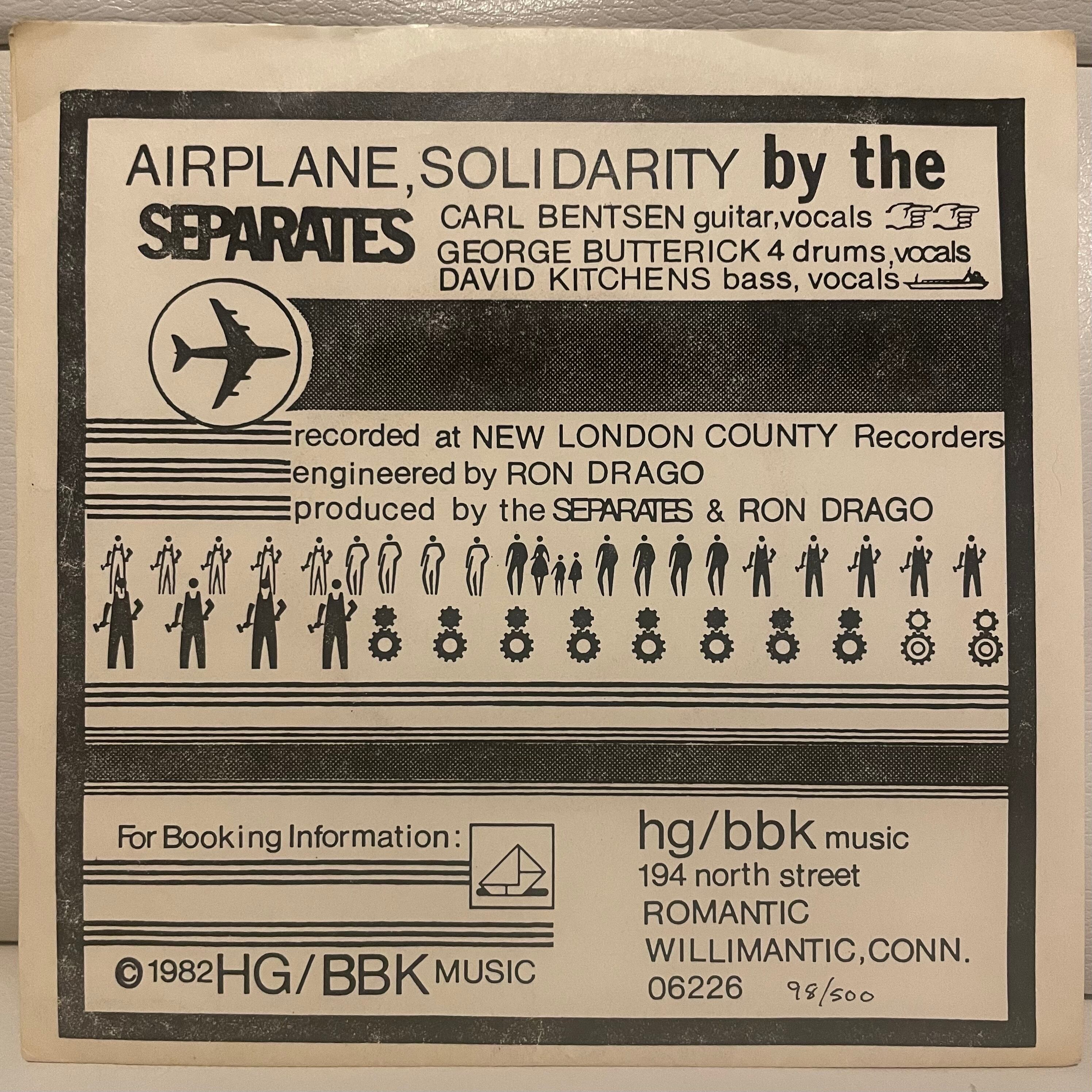 ハードコアバンド White Pigs のドラムが在籍したコネチカット州ウィリマンティック郊外の謎バンド『Separates』の1982年にリリースされた唯一シングル。500枚プレス。B1「Airplane」は Killed By Death パンク愛好家、特に Wipers のような哀愁ダーク・パンク好きは必聴。