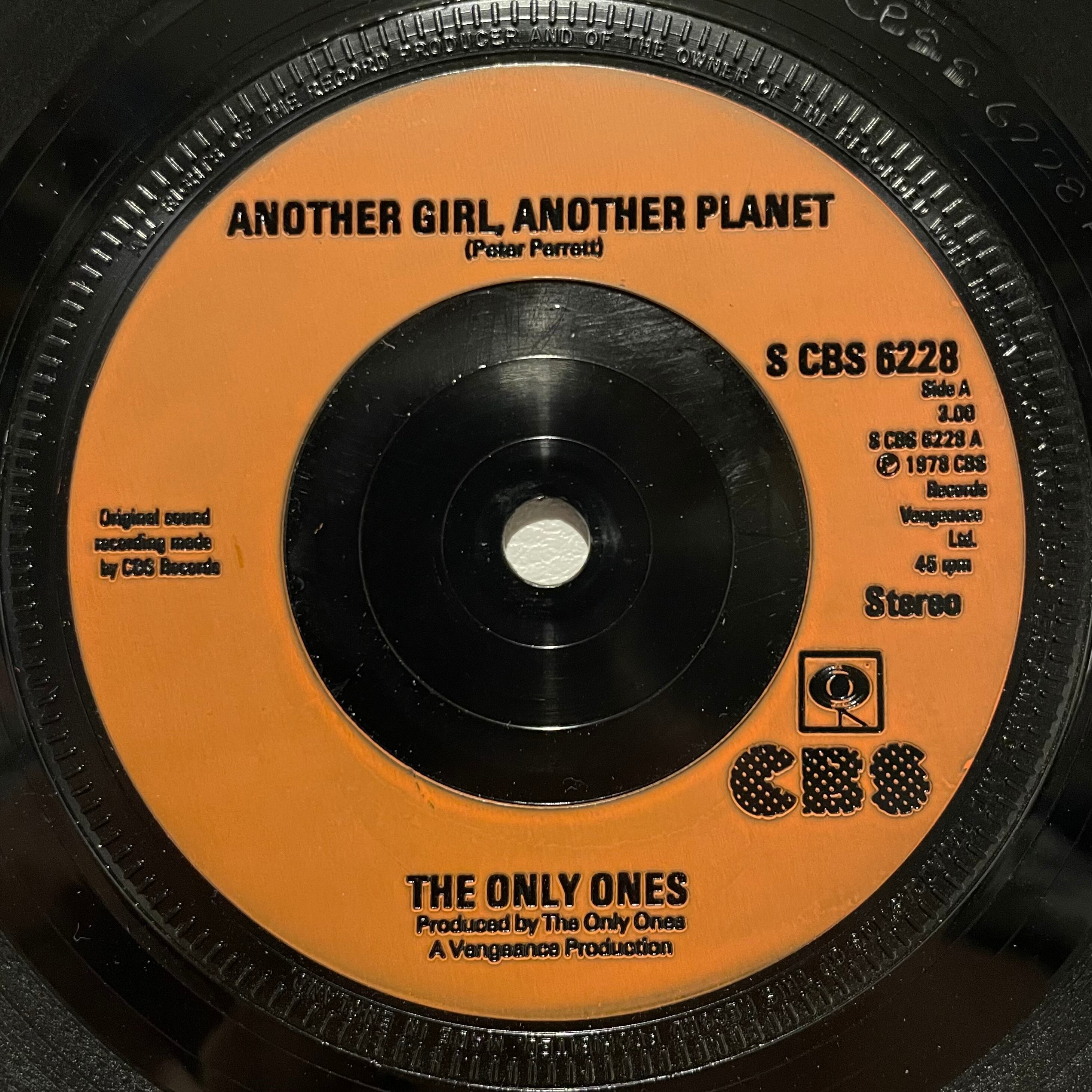 ジャンルを超えた The Only Ones 超名曲「Another Girl, Another Planet」収録のメジャー・デビュー(実質2nd)シングル、オリジナル、プラスチック・レーベル盤。この曲のすべてが宇宙一かっこいい。