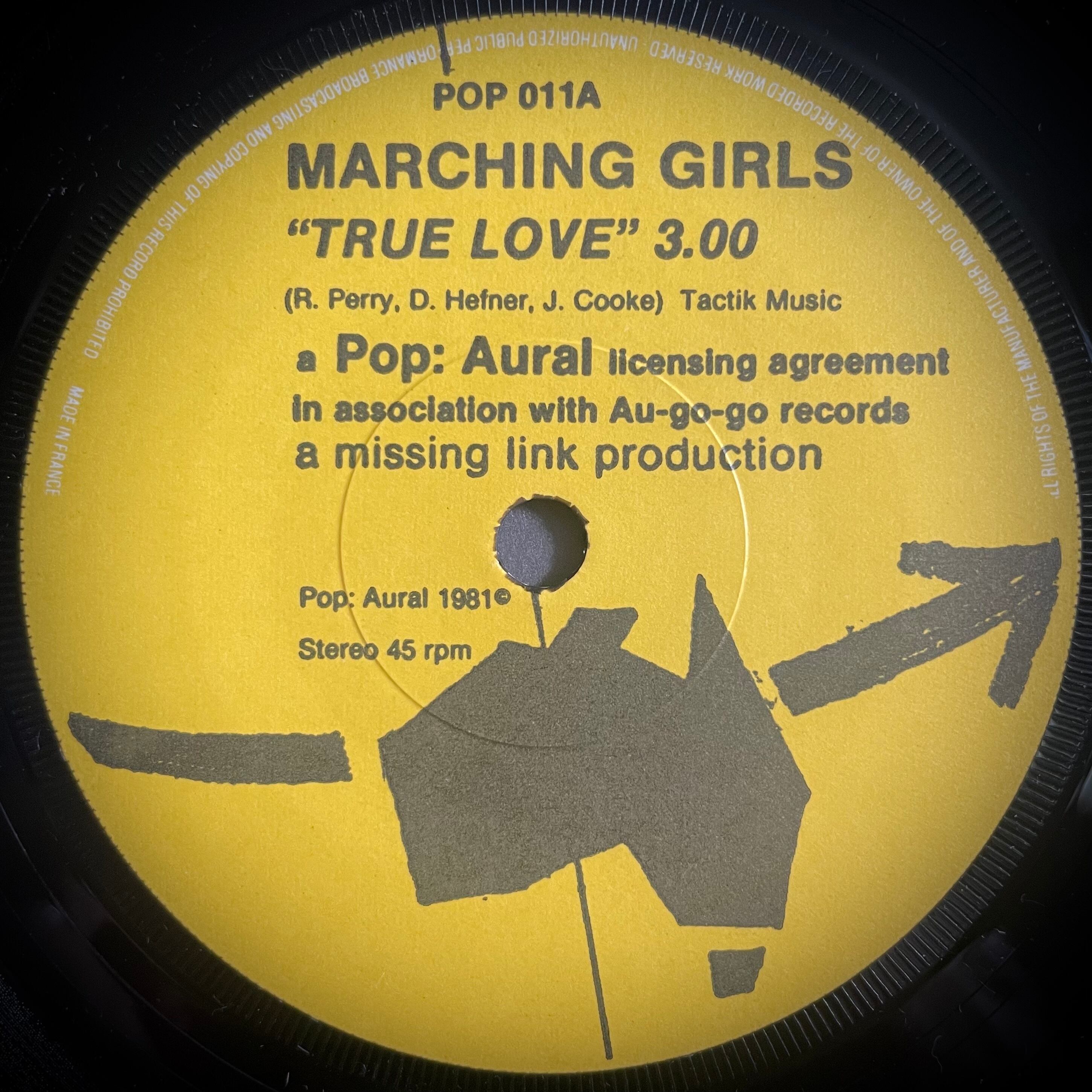 ニュージーランドの The Scavengers が 1978年 オーストラリアのメルボルンに移り Marching Girls に名義をかえて Au Go Go からリリースされた 1st シングルのイギリス盤。A面「True Love」は The Scavengers 名義の録音もあり、厳密にはセルフカバーだが、より洗練されスーパー・パワーポップ化してる超名曲。
